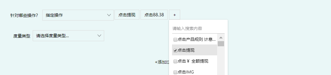 当选择指定操作时,弹出搜索框,输入搜索项后,用户可选择某个或某几个操作,且不可再选择属性和标签查找条件。