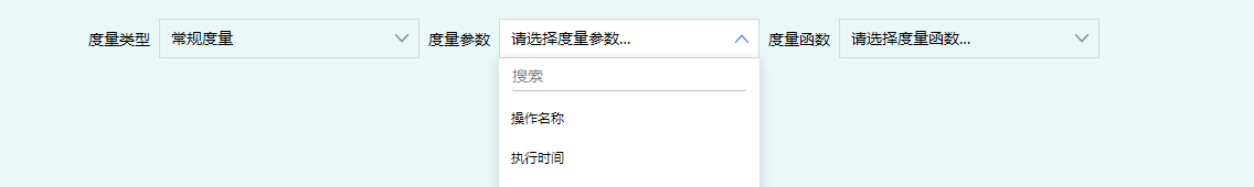 选择“常规度量”后,需先选择【度量参数】,选项包括预置参数、参数标签、选中操作的采集参数和计算参数,如果选中多个操作只显示预置和参数标签。