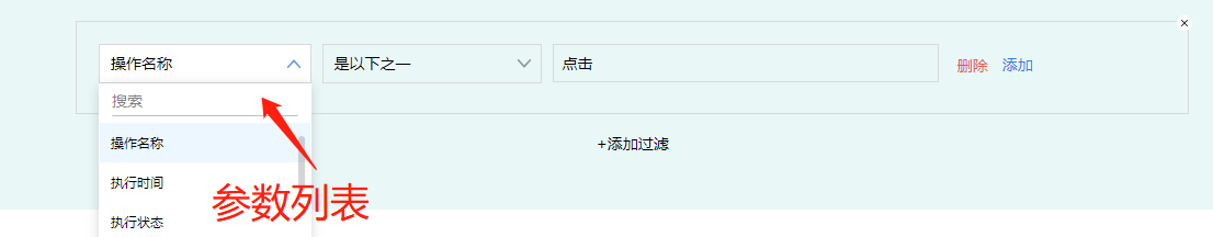 点击框内的【添加】后新增一个过滤条件,条件和条件之间的关系通过左边的“且”和“或”设置。