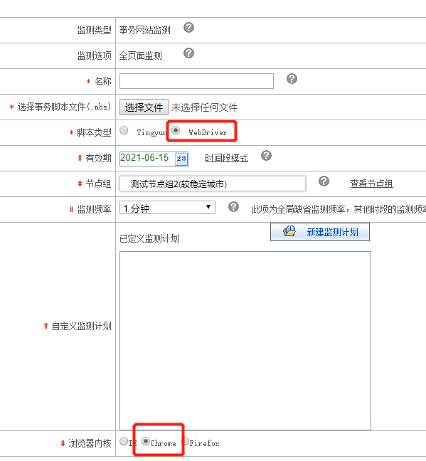 由于当前脚本仅仅在Chrome内核下支持,所以在创建任务时,需选择Chrome浏览器。