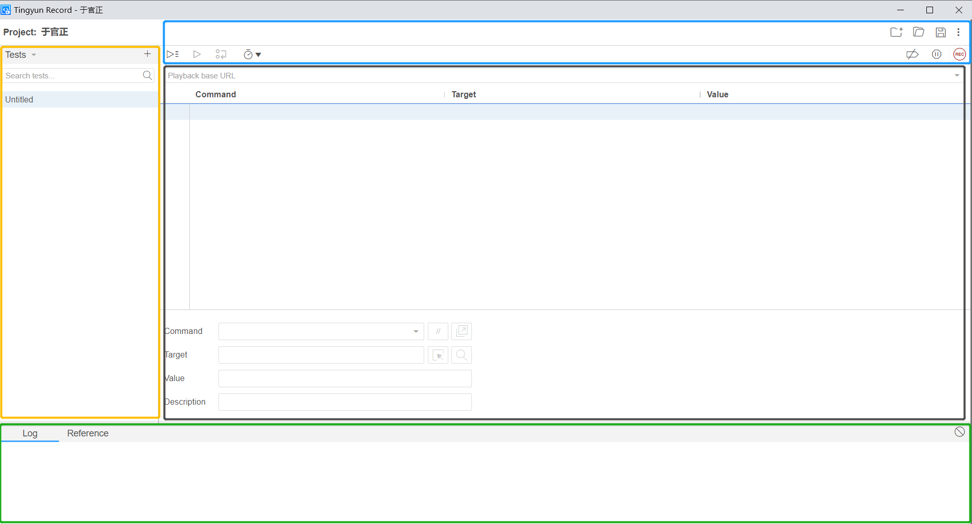 日志展示区:主要展示录制脚本、执行脚本时的日志数据。