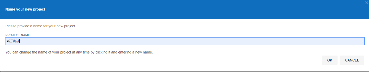 设置项目名称(仅支持英文。中文现在保存不了项目)。