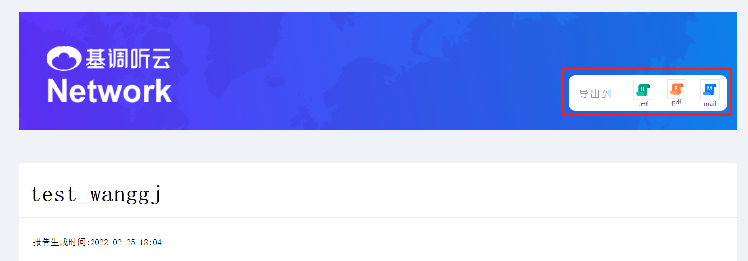 在快速报告列表的操作列中单击预览,可查看报告效果。单击报告页面右上角的导出图标,可将报告以RTF、PDF格式导出到本地,也可单击mail图标以邮件的方式发送到指定邮箱。