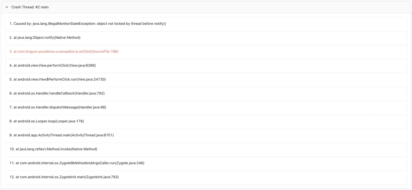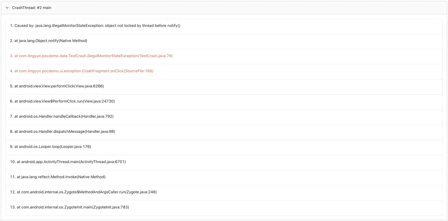 Stack information: Show the source of the crash event and the direct cause of the final crash (if the current version does not upload the symbol table file or the symbolization fails, there will be a prompt).