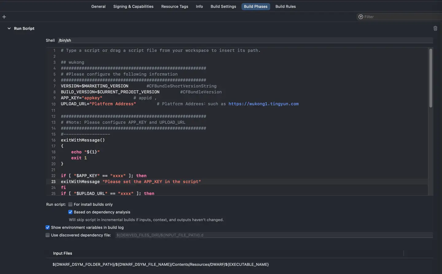 Upload the symbol file file through the Xcode + sh script. The operation steps are as follows.