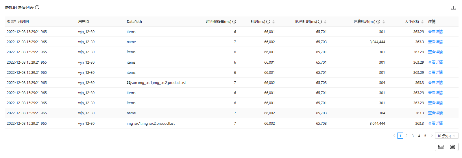 慢耗时详情列表展示仅采集耗时大于500ms的单样本详情。
